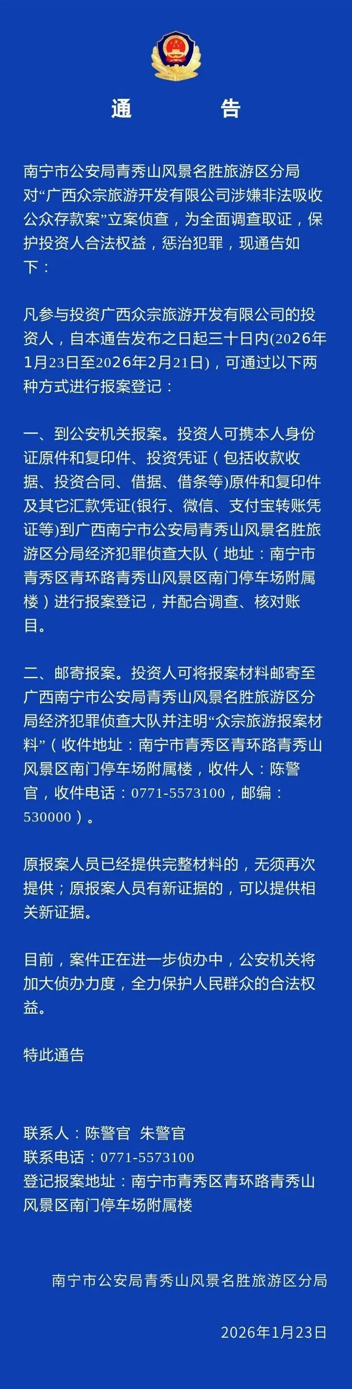 - 开云 广西一公司涉嫌非法吸收公众存款, 警方发布通告2026-01-26