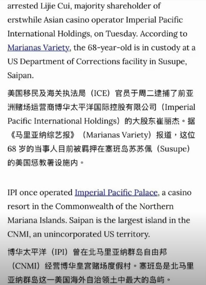 原来,这位崔阿姨可不是普通人,她是西太平洋塞班岛一家豪华赌场的“幕后大BOSS”,曾经坐拥博华太平洋国际控股有限公司64.37%的股份,妥妥的“赌坛女大佬”。可惜,如今公司破产,自己也锒铛入狱,真·人生大起大落比坐过山车还刺激!