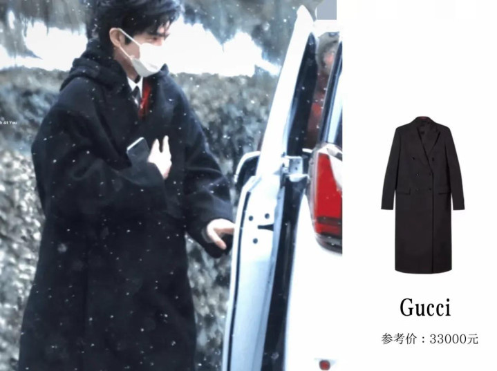 他身上的这件大衣来自Gucci品牌,价值3.3W,衣服版型简洁,上身干练又好看。